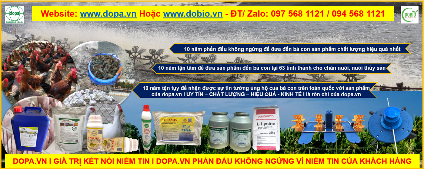 Dopa.vn là công ty thuốc thủy sản với bảng giá thuốc cho cá, tôm, ếch chất lượng, hiệu quả tốt nhất thị trường. Chúng tôi cung cấp thuốc thủy sản cho cá, thuốc thủy sản cho tôm, thuốc thủy sản cho ếch… thuốc thủy sản phòng và trị các bệnh thường gặp cho cá, tôm, cua, ếch, baba…. Chế phẩm vi sinh, chế phẩm sinh học, chế phẩm EM gốc tận nơi trên toàn quốc