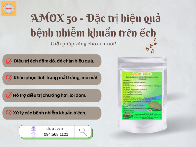 AMOX50 - THUỐC ĐẶC TRỊ BỆNH NHIỄM KHUẨN TRÊN ẾCH