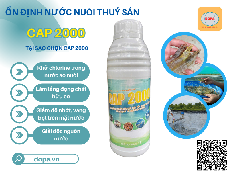 Thấu hiểu những trăn trở đó, DOPA VN xin giới thiệu đến bà con sản phẩm CAP 2000 – một giải pháp đột phá giúp làm sạch môi trường nước, khử độc và tạo điều kiện tối ưu cho sự phát triển của vật nuôi.