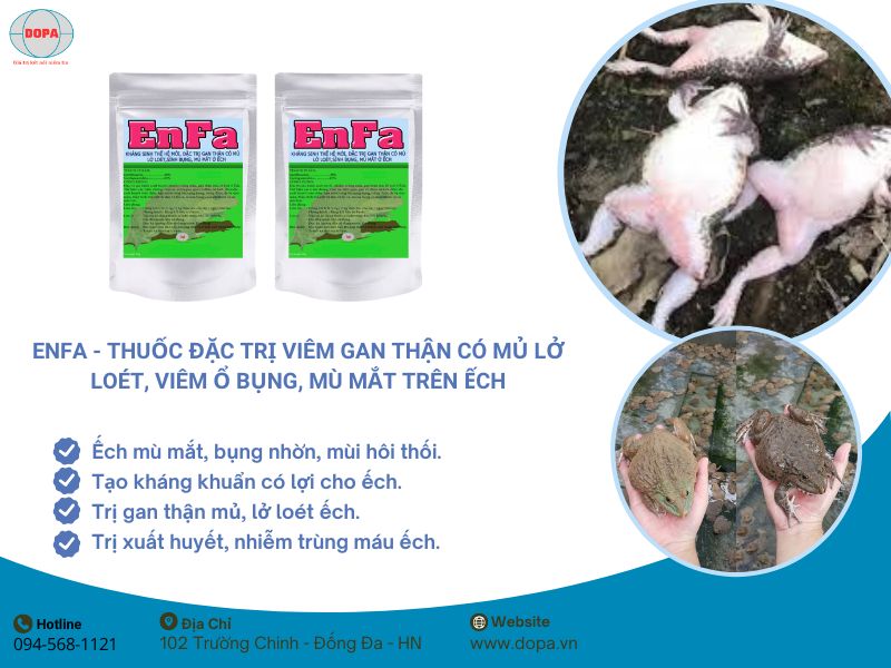 Dùng 3-5g ENFA trên 1kg thức ăn, cho ăn liên tục 7 ngày.
