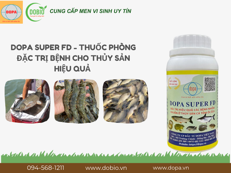 Đừng để các vấn đề bệnh lý làm giảm năng suất và tăng chi phí nuôi thủy sản của bạn. Với công thức độc đáo kết hợp Florfenicol và Doxycycline HCl, DOPA SUPER FD không chỉ giải quyết triệt để các bệnh nhiễm khuẩn mà còn giúp thủy sản phát triển khỏe mạnh, giảm thiểu tổn thất kinh tế.
