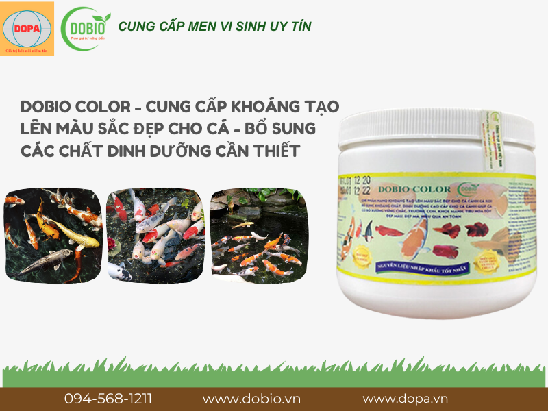 DOBIO COLOR là một sản phẩm khoáng nano chuyên biệt , mang đến giải pháp đột phá giúp tăng cường màu sắc cho cá trong ao nuôi.