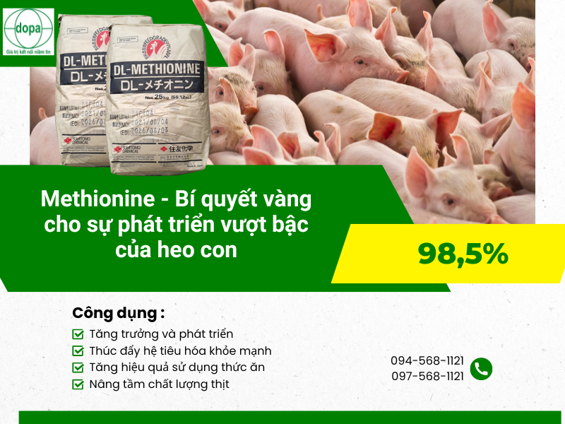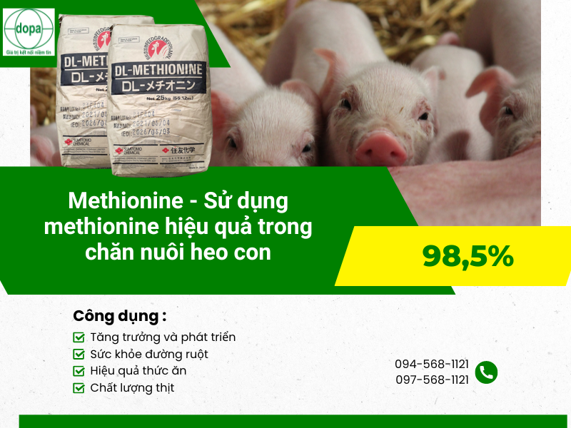 - Vai trò quan trọng: Methionine ảnh hưởng trực tiếp đến sự phát triển, sức khỏe và năng suất của heo con.