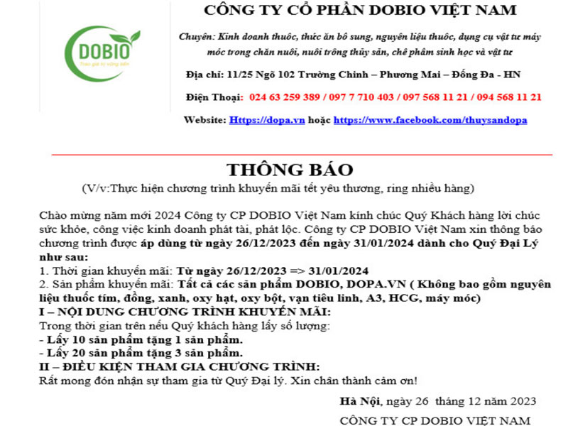 Tết 2024 đang đến gần, bạn đã lên kế hoạch mua sắm gì cho gia đình và bạn bè chưa? Nếu chưa, hãy đến ngay dopa.vn để tham gia chương trình khuyến mại “Tết yêu thương, ring nhiều hàng” với ưu đãi mua 10 tặng 1, 20 tặng 3.